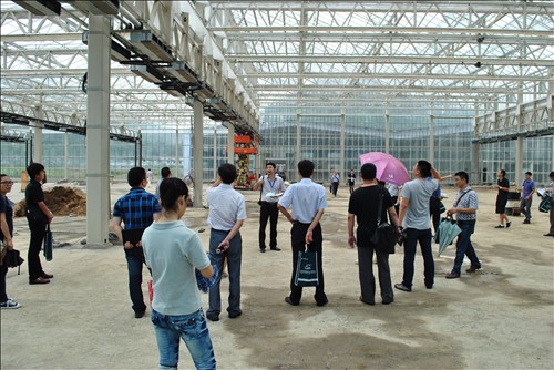 行業經銷商代表們參觀青山湖?花園中心玻璃溫室大棚