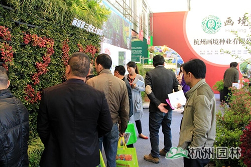 展位的一側安裝了一塊2米多高的綠墻,使得這塊地方著實熱鬧,好奇的觀眾紛紛向工作人員咨詢。在工作人員的介紹下,許多人都對這種干凈、美觀又省心的無土綠墻產生了很大興趣,還有很多業內同行表示愿意與畫境一起合作,將立體綠化推向更多的客戶。