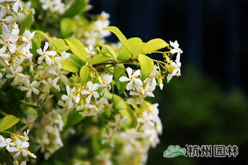 意大利白花絡(luò)石藤(Rhyncospermum jasminoides),俗稱風(fēng)車茉莉,為夾竹桃科的常綠藤本,莖赤褐色,幼枝被黃色柔毛長,有氣生根。常攀緣在樹木、巖石墻垣上生長,是一流的藤蔓植物,四季常綠。開花期在夏季,5月進入盛花期,開花量極大,有茉莉的香味,聞起來沁人心脾。