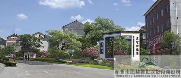 充分利用原有鄉土田野景觀,合理布置文化景觀節點,將畫水鎮打造成一派秀麗、生態的田園風光。整體景觀風格力求自然、生態,并保持建筑、植物、景觀小品的和諧與統一。設計時,提煉許宅花燈制作、紅木等傳統元素,與景墻、小品相融合,進行演繹與表現。村鎮入口標識采用傳統東陽民居建筑形式進行演繹,展現淳樸風格。