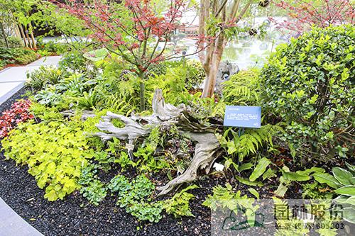 走過沉水橋廊,岸邊,是清靜淡雅的幽蘭花境,腐木橫臥、蕨類幽幽,枯枝為籬、幽蘭待放,木屑鋪地、玉簪竄出,陶淵明筆下的“幽蘭生前庭,含薰待清風。清風脫然至,見別蕭艾中”的幽靜生活躍然眼前。